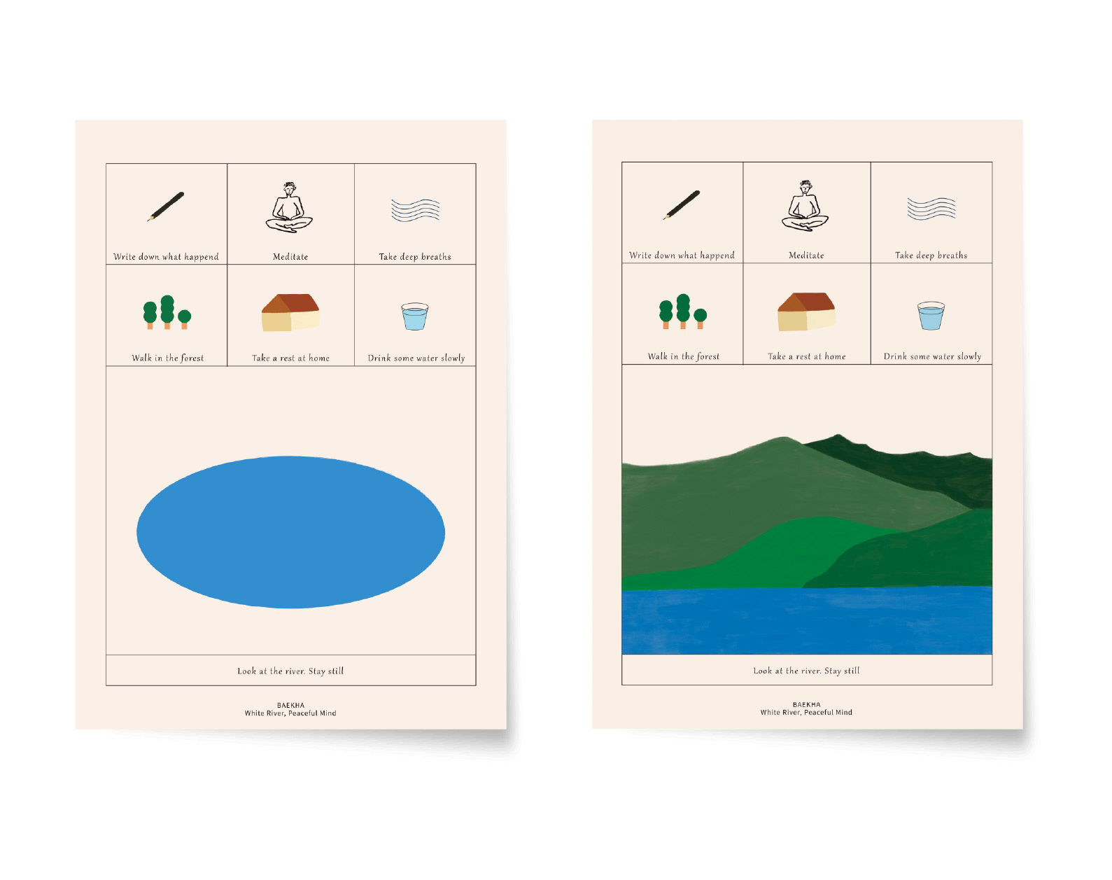 스페이스 윤슬에서 평온함과 관련된 나의 이야기를 담은 '무언가'를 만들어 달라고 요청했다. 위의 내용은 개인적으로 평온함을 느끼길 원할 때 하는 행동들을 정리한 내용이다.