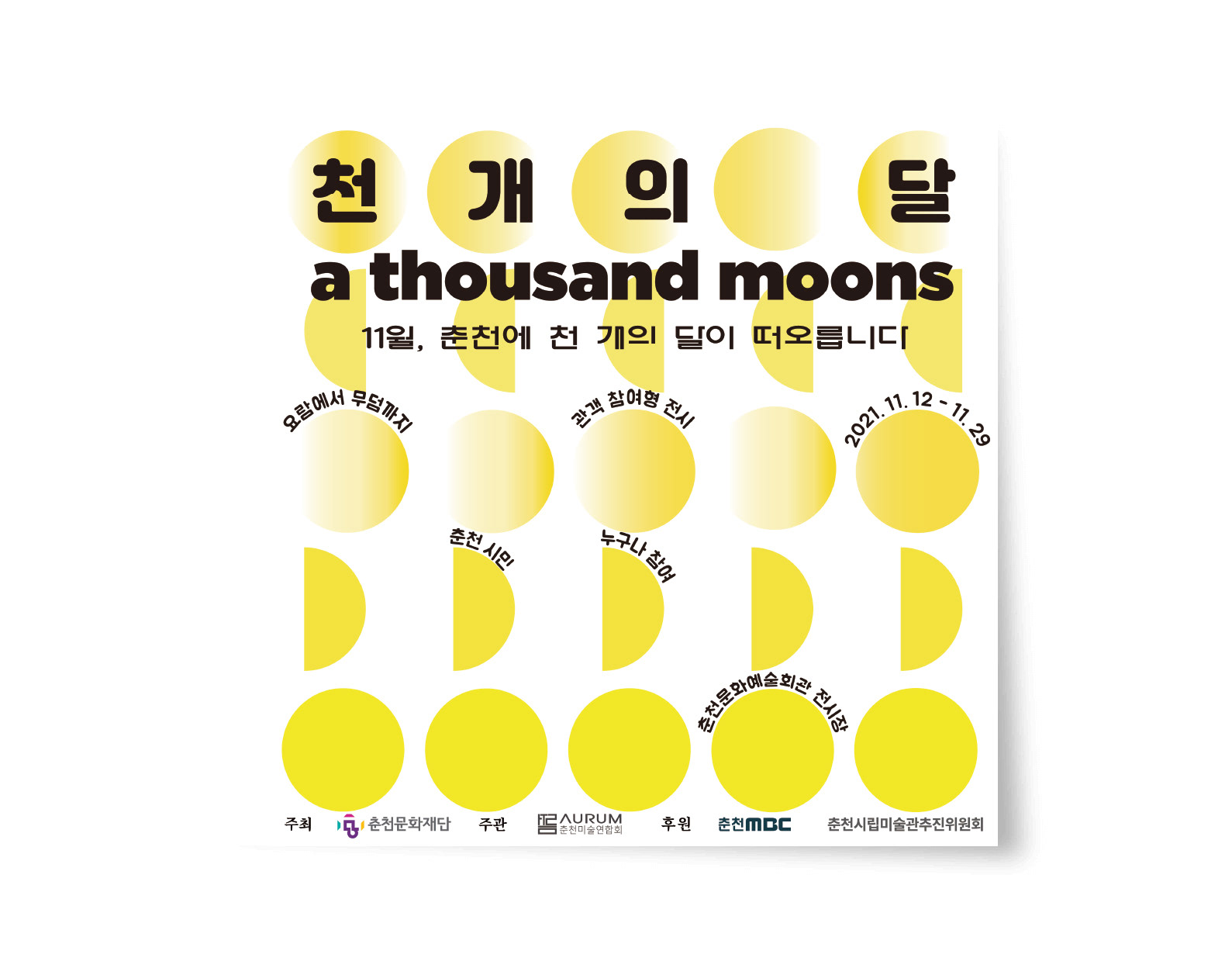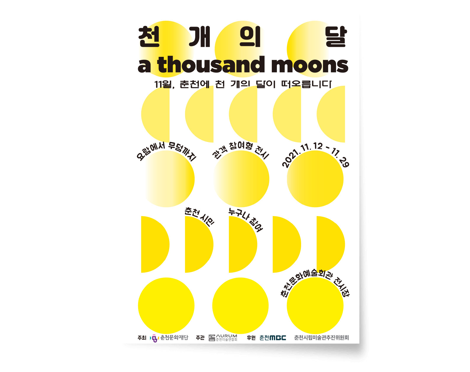 요람에서 무덤까지 전시의 부대행사인 천 개의 달 행사 포스터 작업은 달은 하나지만 시간에 따라 계속해서 다른 모습을 보여주는 달에 초점을 맞아 작업했다. 행사는 1,000개에 조금 못미친 912개로 마감했다.