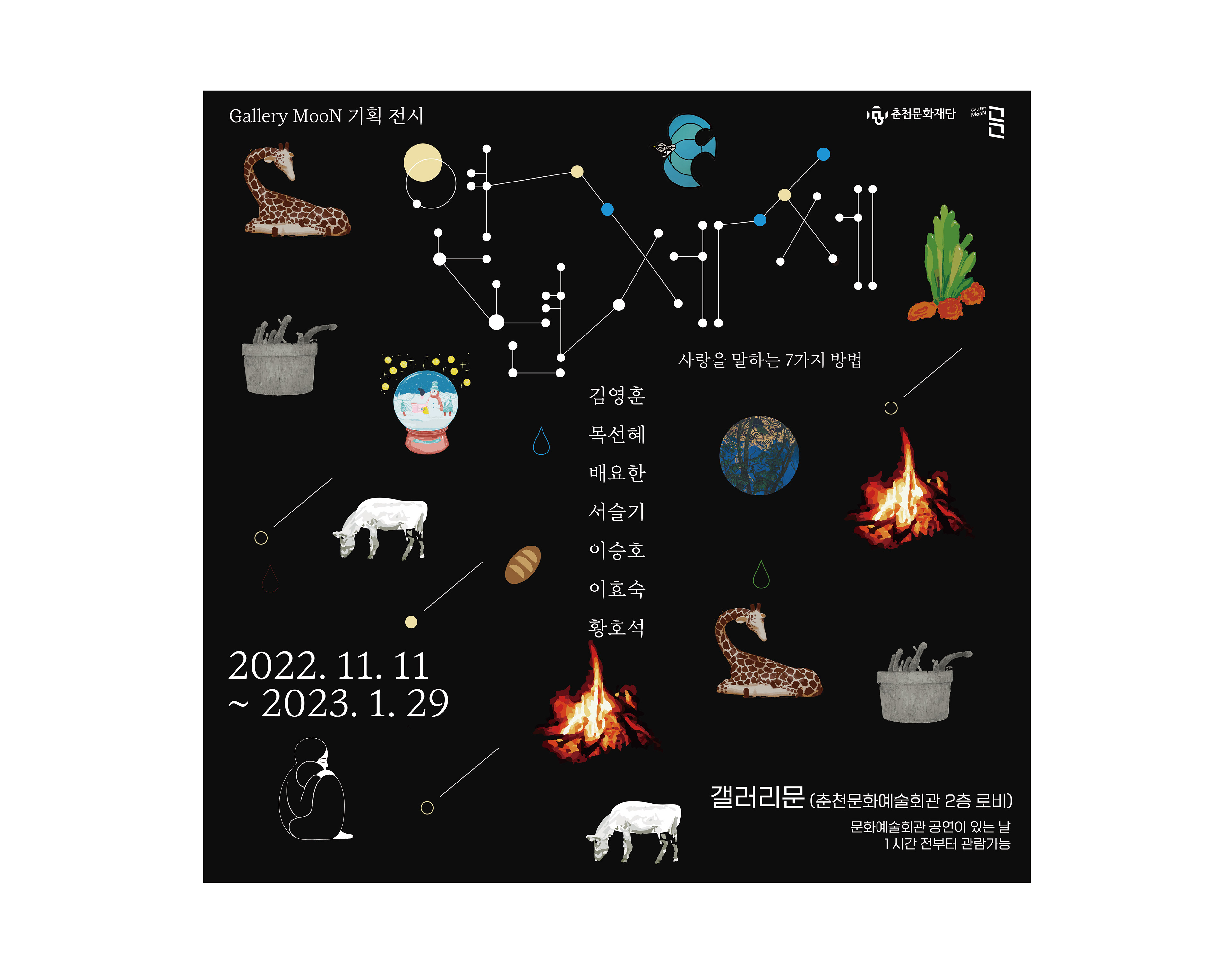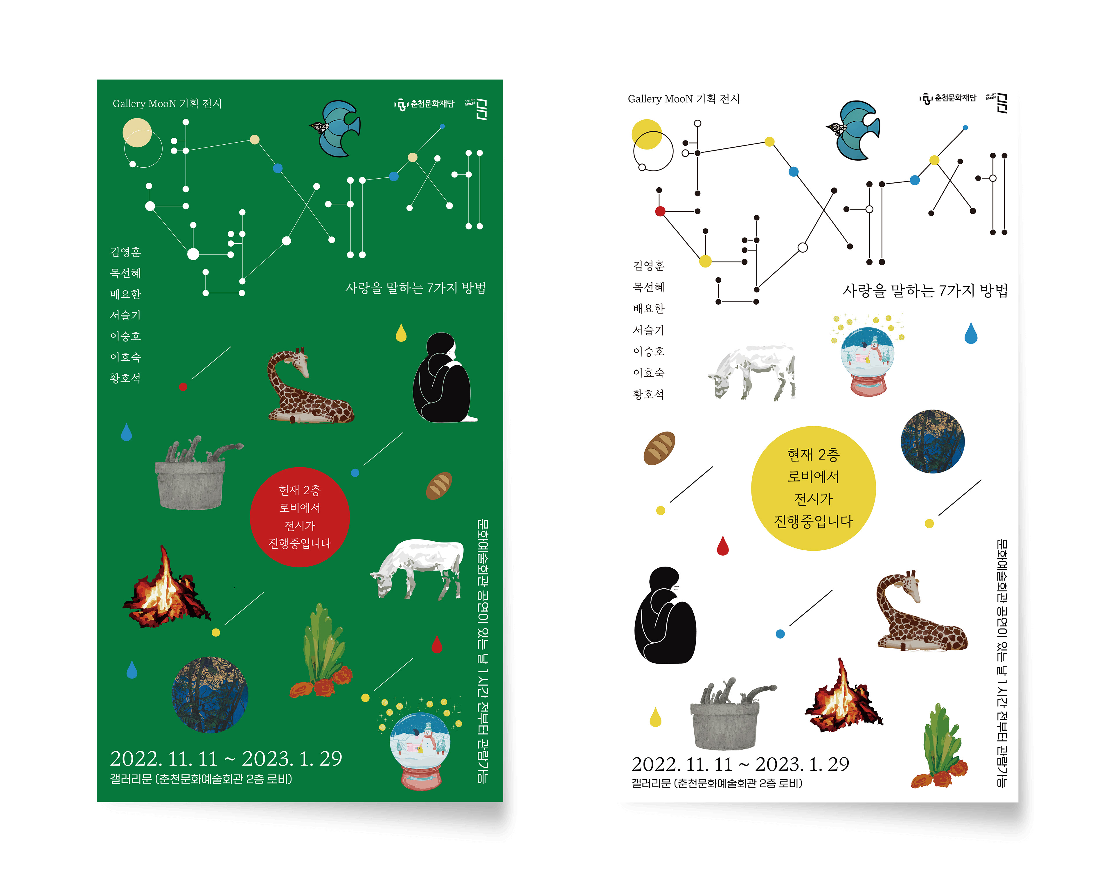 작업범위 : 포스터, 브로셔, 기둥 홍보물, X배너, 경매 작품용 스티커, 초대장(웹용)