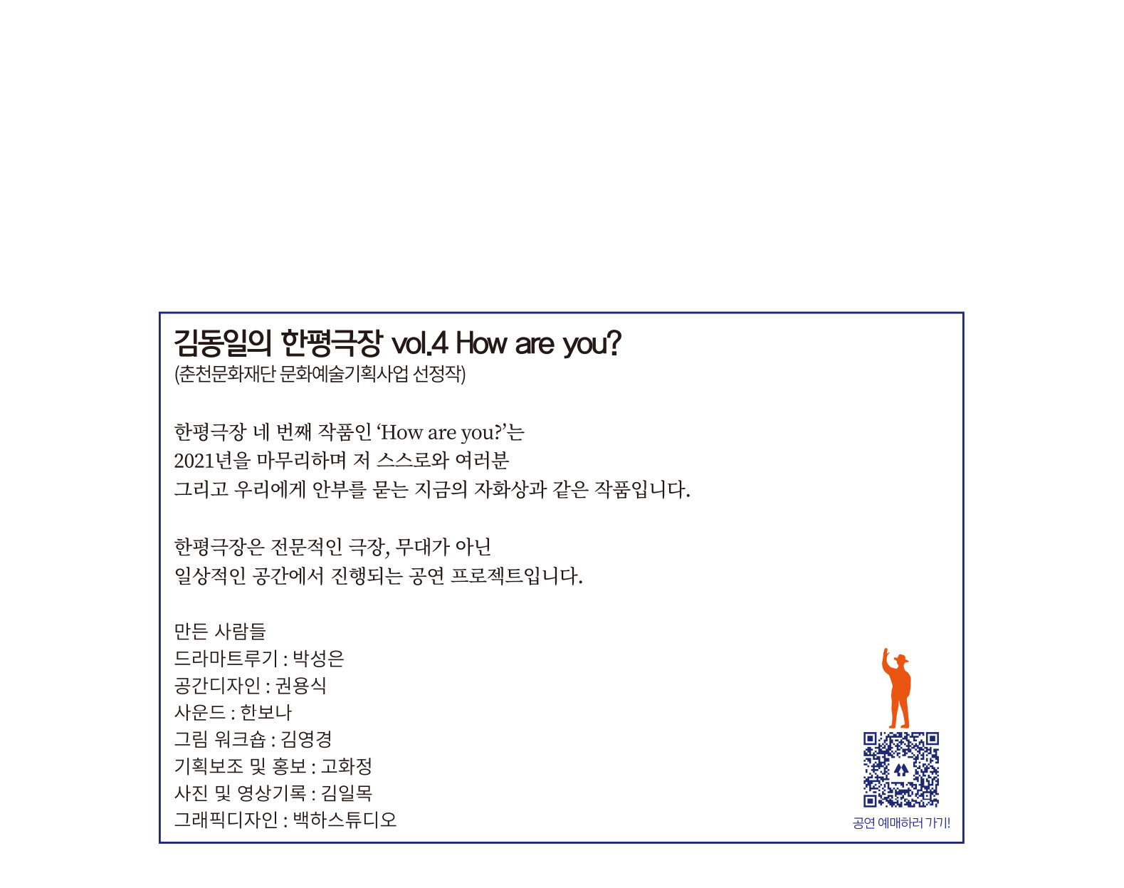 보나커피집에서 진행된 공연은 차 한 잔과 함께 요즘 어떻게 지내는지 안부를 묻는 공연이었다. 작가의 요청대로 컵 위로 음악이 나오고 무용수가 춤을 추는 따뜻한 연말을 표현했다.
